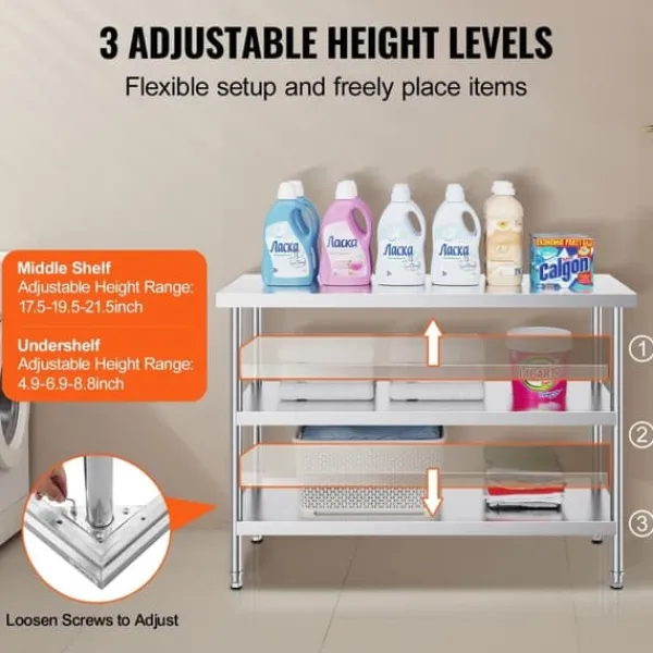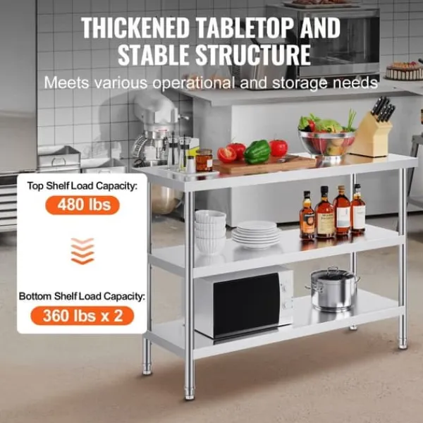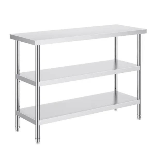 Med en uppgraderad tjocklek på 0,8 mm är det här bordet robust och hållbart, ger gott om förvaring för dina förnödenheter och gör att du enkelt kan stapla dina favoritingredienser. De rätta nyckelorden för detta sammanhang inkluderar ”rostfritt stål” och”förvaring”.