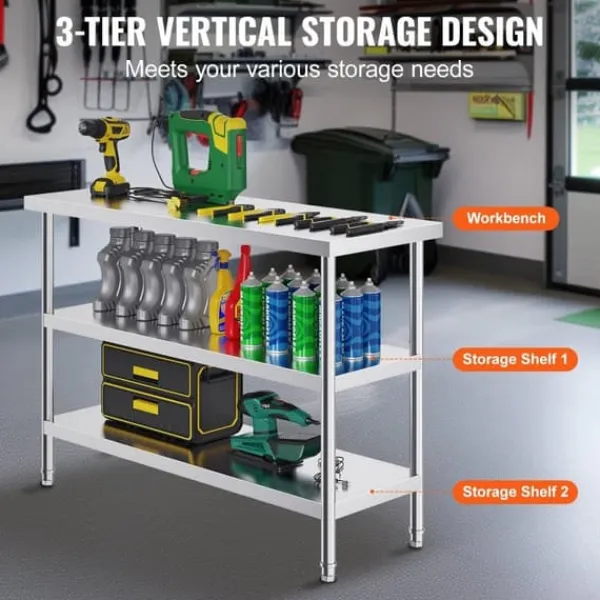 Förutom förvaring kan vårt bord användas för att hacka grönsaker, knåda deg, skära kött och andra köksrelaterade uppgifter. Den är perfekt för användning i barer, restauranger, hotell, bufféer, cateringevenemang, skolaktiviteter eller kontorspausrum. Sökord som ”köksrelaterade uppgifter” och ”rostfritt stål” kan förbättra sökbarheten för denna produkt.