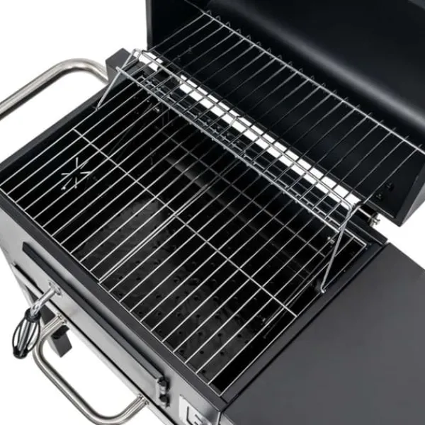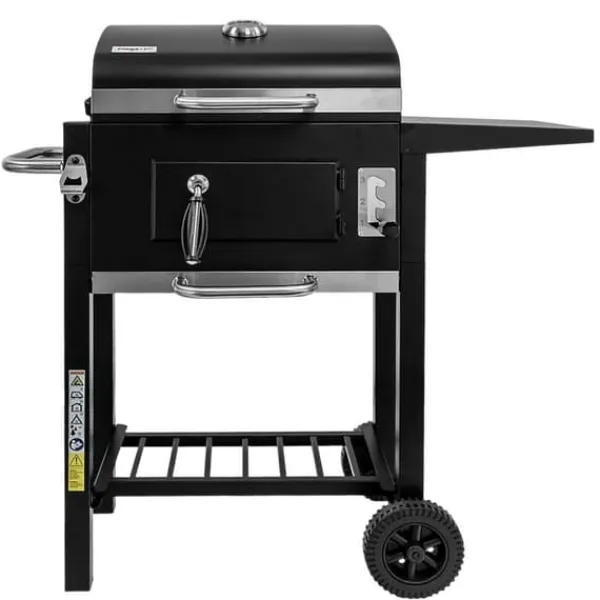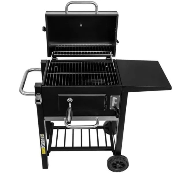 Mega-M är ett utmärkt valför trädgårdsgrillentusiaster. Dess robusta eldskål, gjord av högtemperaturbeständigt målat stål, garanterar hållbarhet och tillförlitlighet under många årstider. Utrustad med ett förkromat gallerför grillning och uppvärmning av mat, grillen erbjuder mångsidig matlagning. Öppningsklaffen på skålen gör påfyllning av kol snabbt och bekvämt. Mobil designvagn,hyllasida och ytterligare funktioner som t.exasklåda,höjdjustering eldstadellertermometer i locket, säkerställer användarvänlighet, vilket gör grillningen till ett rent nöje.