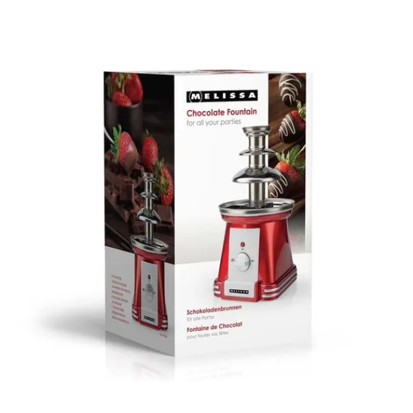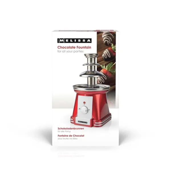 Tack vare sin 3-stegs metalldesign, formad för att gradvis bredda sig från topp till botten, skapar fontänen en jämn, iögonfallande chokladkaskad. Lägg bara i din favoritchoklad – mjölk, mörk eller vit – så länge den är fri från bitar, och låt fontänen göra resten.