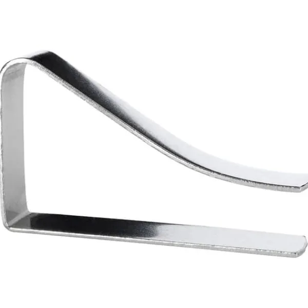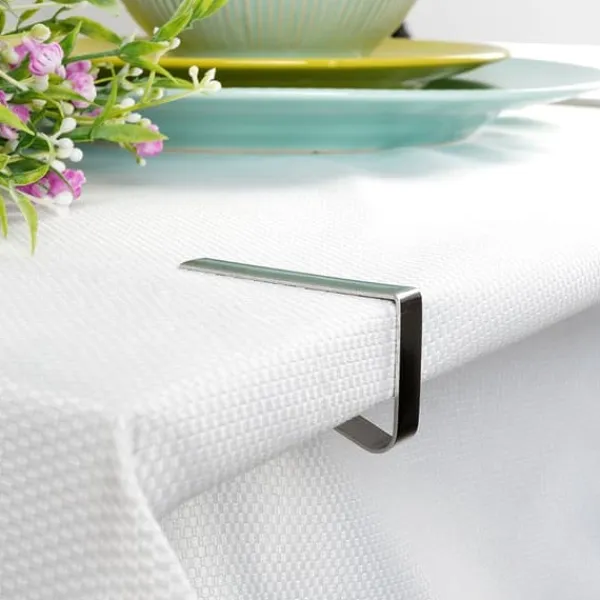 Bordsduksklämma i metall. Håller duken perfekt fast vid bordsskivan och förhindrar att den glider. Användbar i alla hem, trädgårdar, terrasser eller balkonger. Oumbärlig för blåsigt väder under utomhusfester eller picknickar. Det praktiska, slitstarka klämman säkerställer en stabil bordsduk som förhindrar att disk som placeras på den glider eller faller. Tillverkad enligt europeiska standarder.