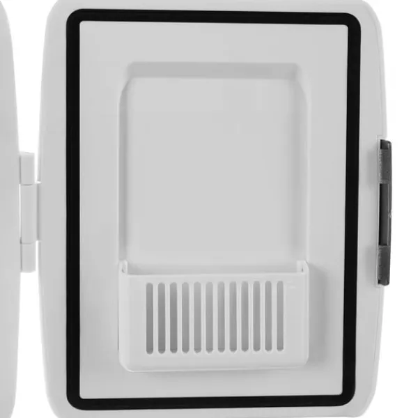 Kylskåpet har två nätaggregat, ett för bilen och ett annat för hemmet eller campingen. Med sin kompakta konstruktion kan du ta med den överallt, och du behöver inte oroa dig för att innehållet faller ut tack vare dess dörrlås. Inuti finns en avtagbar hylla och en ficka på dörren för alla dina förvaringsbehov. Vem sa att man inte kan ha det bästa av båda världar?