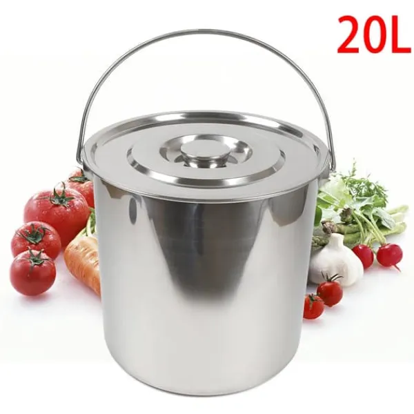 - Stor kapacitet: upp till 20 L utan lock, cirka 18 L med lock.