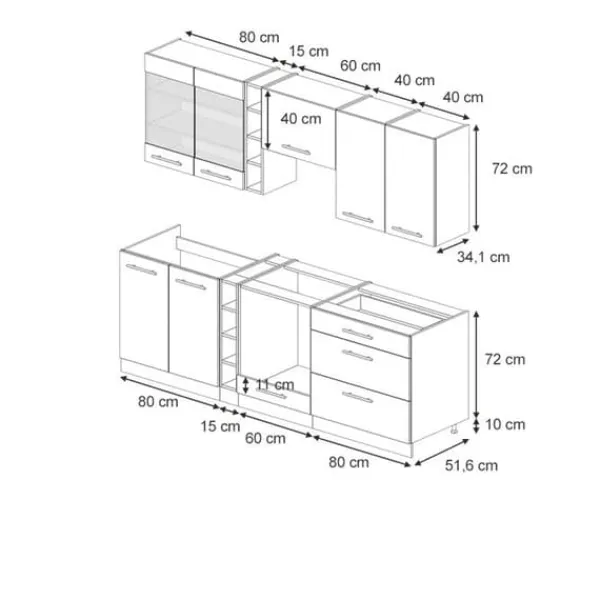 MATERIAL: Det modulära pentryt är tillverkat av lättskött 16 mm spånskiva, med melaminhartsbeläggning. Alla fronter på köksenheterna är gjorda av högkvalitativ MDF.