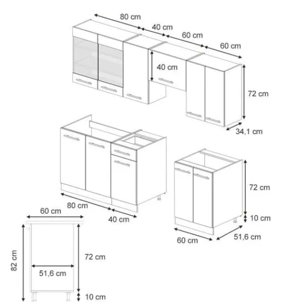 MATERIAL: Det modulära pentryt är tillverkat av lättskött 16 mm spånskiva, med melaminhartsbeläggning. Alla fronter på köksenheterna är gjorda av högkvalitativ MDF.