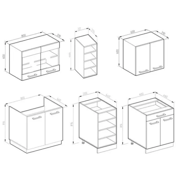 DIMENSIONER: Köksblocket har en generell storlek på 160 cm, djupet och höjden på de nedre och övre modulerna visas på bilderna.