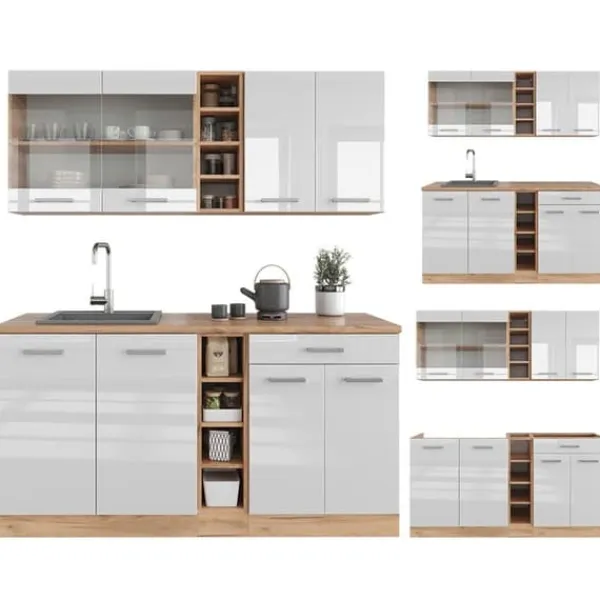 Detta ”R-Line” inbyggda kök är en optimal design för varje hem, och erbjuder nöje att använda tack vare sitt trevliga utseende.