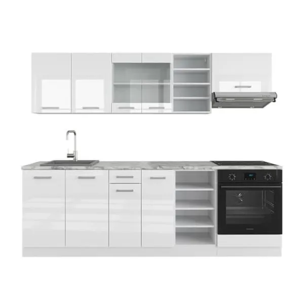 Monteringsfärdiga Kök & Pentryn-R-Line kök, 240 cm utan bänkskiva, blank vit/vit, Vicco