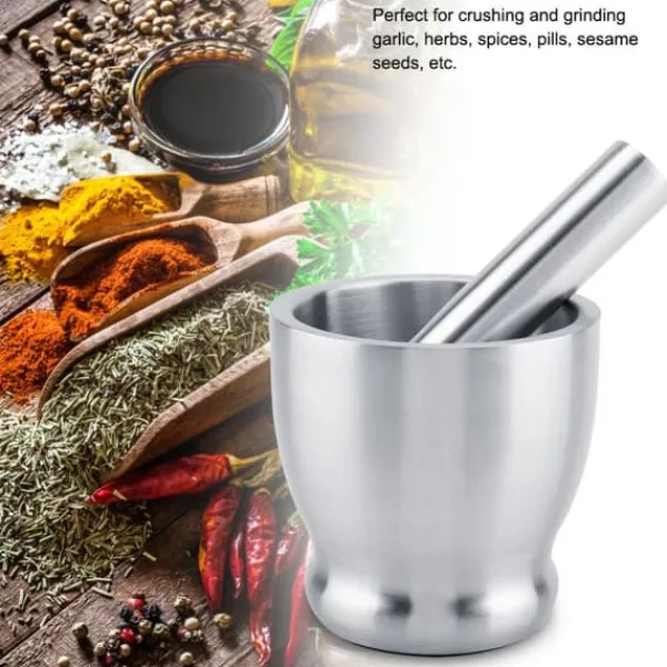 Välkommen till vår butik! Mortelstöten är gjord av högkvalitativt rostfritt stålmaterial, vilket säkerställer hållbarhet, rostbeständighet och slitstyrka. Den är perfekt för att krossa och mala vitlök, örter, kryddor, piller, sesamfrön och mer.