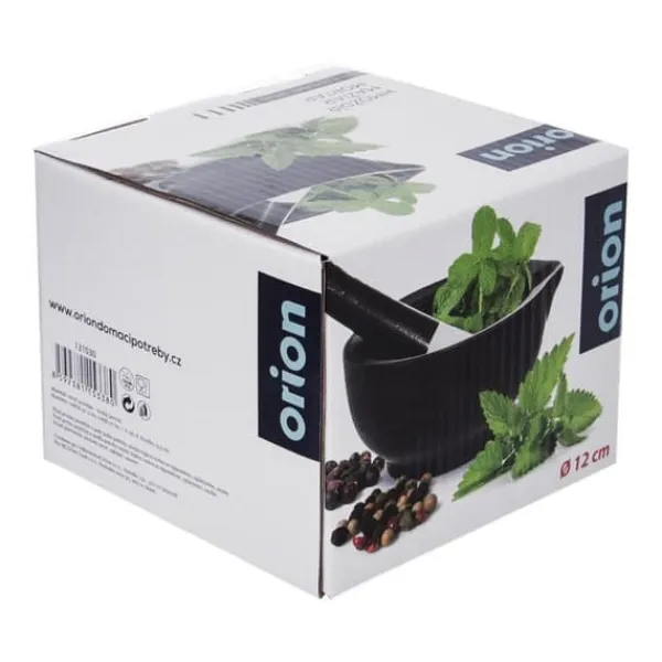 Mortel med stöt tillverkad av porslin. Extremt användbar i köket för att mala kryddor, frön, örter och nötter. Tack vare sin solida konstruktion kommer den att vara ett oumbärligt verktyg i ditt kök. Originalprodukt från det tjeckiska märket Orion. Tillverkad i enlighet med europeiska standarder.