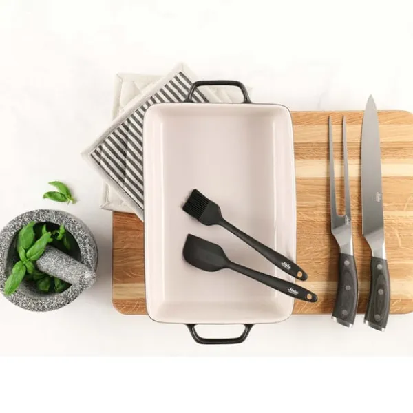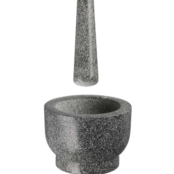 Den tunga granitmorteln ligger stadigt på plats för enkel användning och är Ett klassiskt redskap som lyfter dina rätter till nya smaknivåer