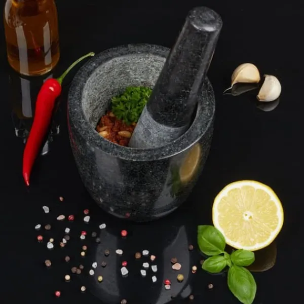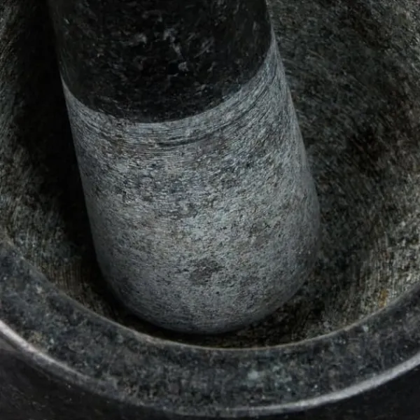 Förbered enkelt aromatiska såser, pestos och pastejer med denna höga mortel och stöt i granit, utformad för effektiv malning av örter, kryddor och nötter. Den grova insidan och stötens ände säkerställer optimal krossning, medan den polerade utsidan ger ett stilrent inslag i ditt kök. Detta robusta köksredskap passar även för att göra salvor och andra huskurer.