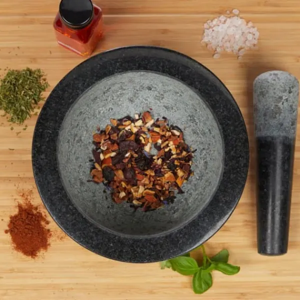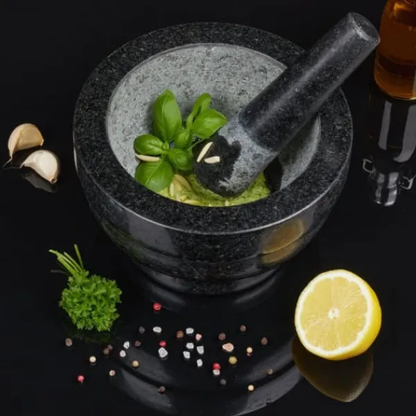 Skapa smakrika såser, pesto och pastor enkelt med denna mortel och stöt i granit, designad för effektiv malning av kryddor, örter och nötter. Den ruggade insidan och stöten säkerställer optimala resultat, medan den polerade utsidan ger ett stilrent inslag i ditt kök. Detta hållbara köksredskap är även idealiskt för att förbereda salvor och huskurer.