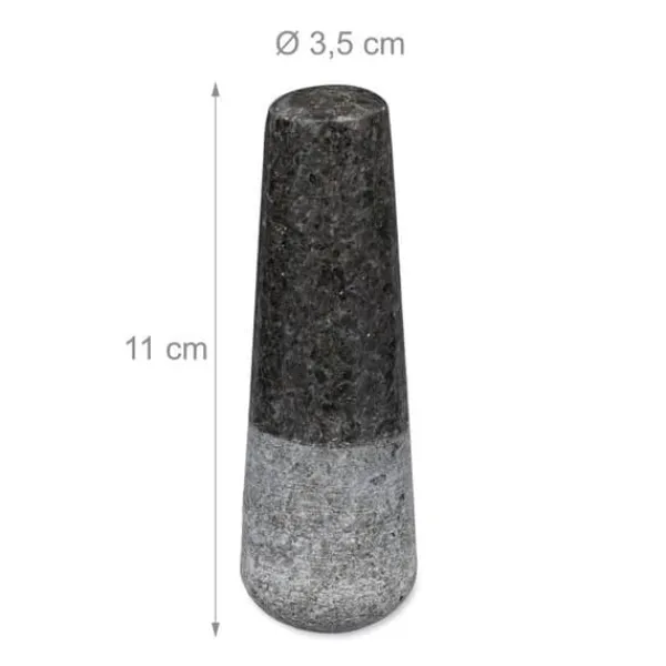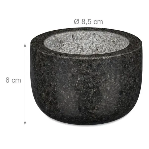 Rund mortel i granit för kryddor Skapa enkelt dina dippar, såser, pesto och andra blandningar. Med den passande stötte, krossa och pressa enkelt ingredienserna i morteln av massiv sten. Tack vare den grova ytan på skålen och stötte, får man en bra extraktion av aromerna från örter och kryddor. Du förbereder på så sätt utsökta måltider. Den tunga granitstöten är stabil på din bänkskiva och du har ett bra grepp om stötte. Eftersom granit är en naturlig produkt kan den variera i färg och struktur. Det innebär att produkten kan se annorlunda ut jämfört med bilderna.