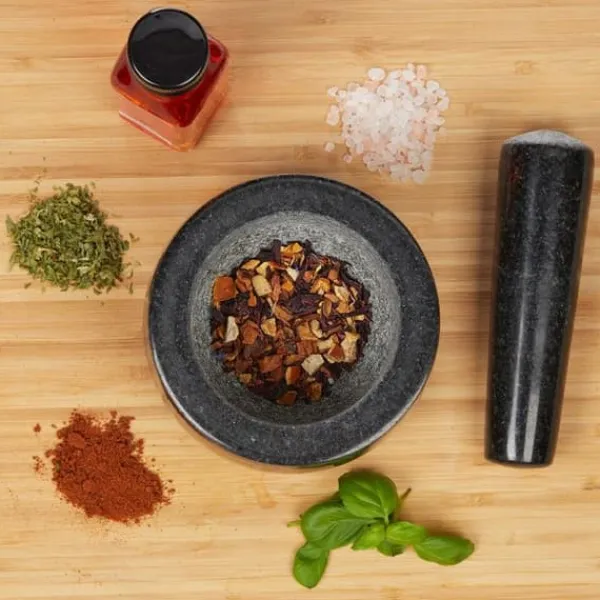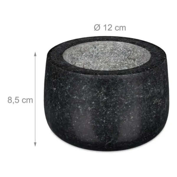 Svart mortel för köket Om du föredrar smaken av nymalda kryddor är denna stabila mortel i granit med stötstång precis vad du behöver. Den är även perfekt för förberedelse av dina kryddblandningar eller för en läcker pesto. Spetsen av stötstången är grov liksom insidan av skålen. Detta ger ett bra resultat vid krossning. Dessutom övertygar den med sin stabilitet under alla förhållanden. Observera: Innan första användningen, skölj med vatten och om nödvändigt med lite grovt salt för att ta bort tillverkningsrester.