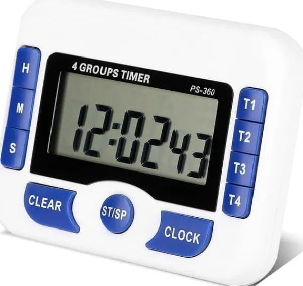 Fyra oberoende timers: T1-T4-knapparna kan användas oberoende, samtidigt eller separat, med pipljud som indikerar olika tider.