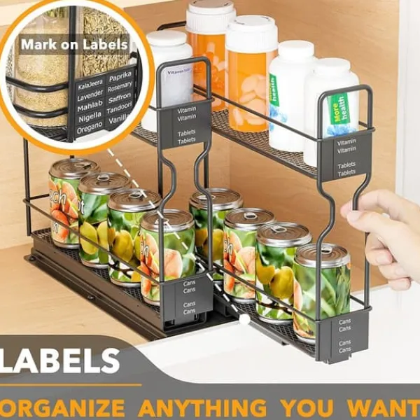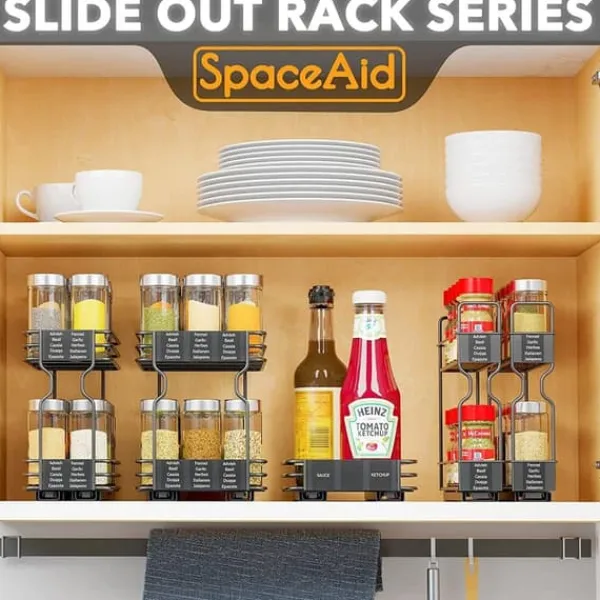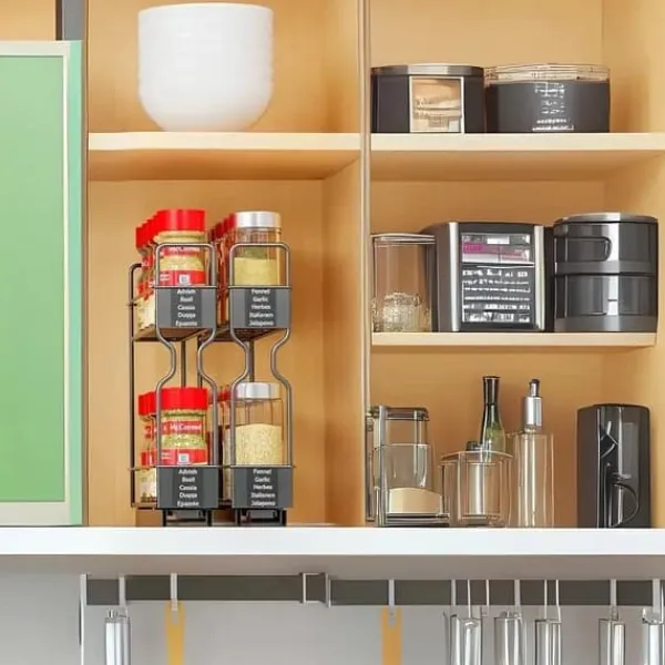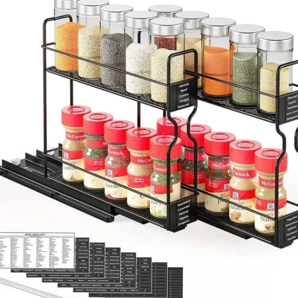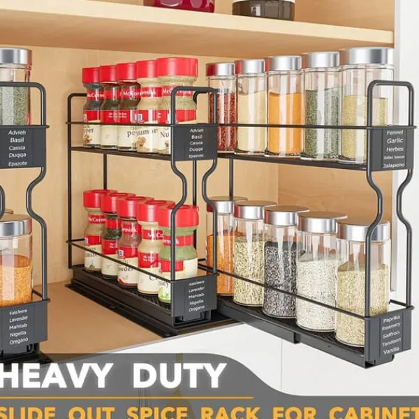 Denna utdragbara kryddhylla maximerar förvaringsutrymmet och gör det enkelt att komma åt dina kryddor.