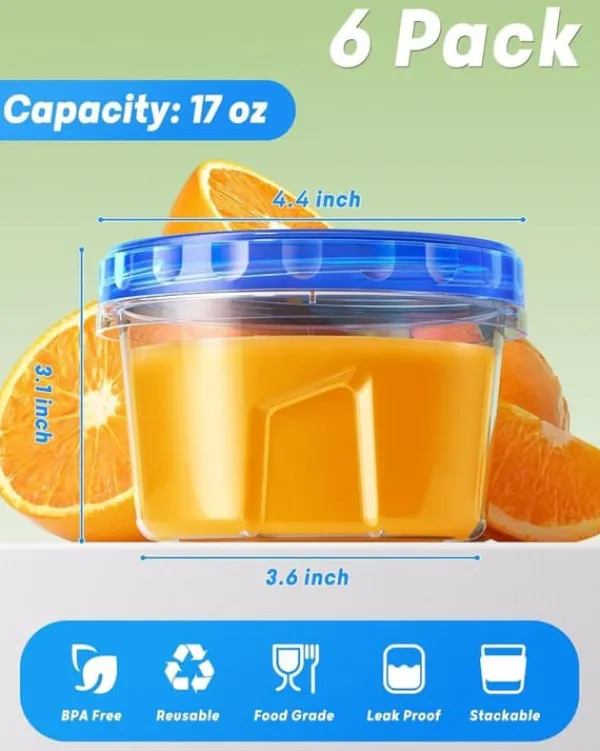 Designade för att staplas och maximera utrymmet i kyl, skafferi eller skåp. Lätta och smidiga att ta med.