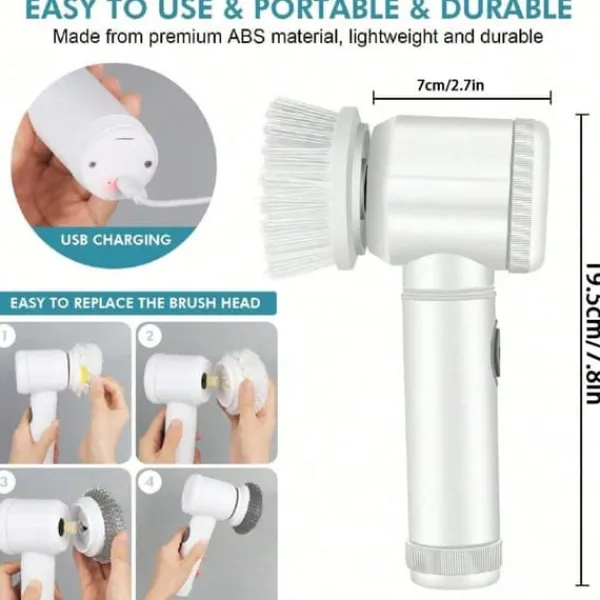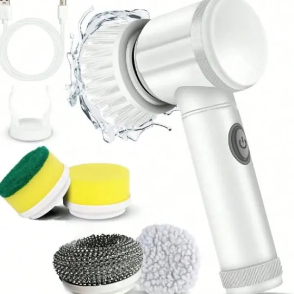 Denna elektriska rengöringsborste är utrustad med 5 utbytbara borsthuvuden och passar utmärkt för rengöring i kök, badrum, kakel, diskhoar och spisar. Med en kraftfull rotationshastighet på 350 rpm och ett uppladdningsbart 1500 mAh batteri erbjuder den upp till 80–100 minuters driftstid. IPX6-vattentät design gör att den tryggt kan användas i våta miljöer. Kompakt, effektiv och lätt att använda – din nya hushållshjälpare!
