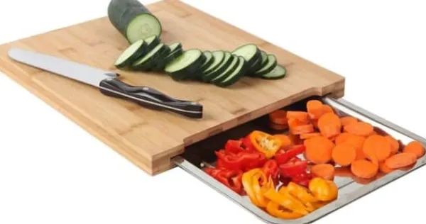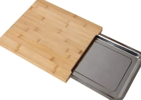 Spara plats på köksbänken genom att flytta hackade grönsaker direkt till den utdragbara lådan.