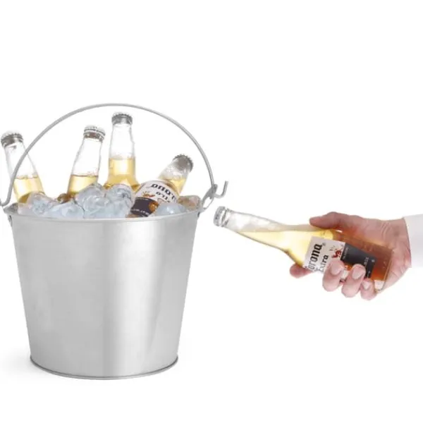 Producentkode: 516751 Isspandkøler til øl og vanddrikke giver dig mulighed for at køle din yndlingsdrink. Der er en åbner monteret på siden af spanden. Produktegenskaber: – Flaskeåbner indbygget i håndtagets montering, – Kan ikke komme i kontakt med mad, – Kan ikke vaskes i opvaskemaskine. Tekniske parametre: – Katalognummer – 516751 – Stand – Ny – Mærke – Hendi – Dimensioner – ø230x(H)180 mm Inkluderet: – Isspand
