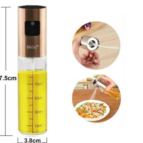 KINGHOFF Oljespruta 100mlger dig möjligheten att lägga till olja till din dagliga matlagning. Det underlättar stekningen eftersom pannan är jämnt täckt med ett tunt lager olja, vilket hjälper till att minska kaloriinnehållet i rätter och gör dem hälsosammare.