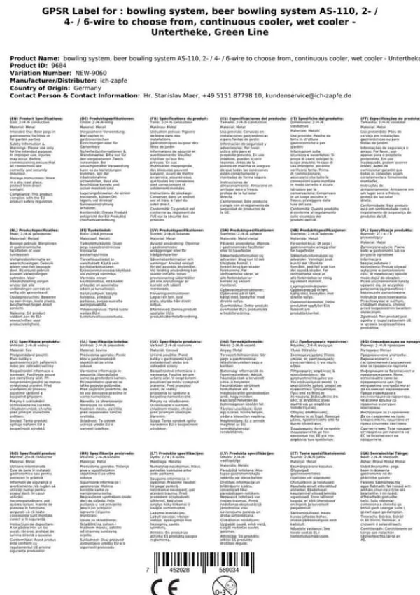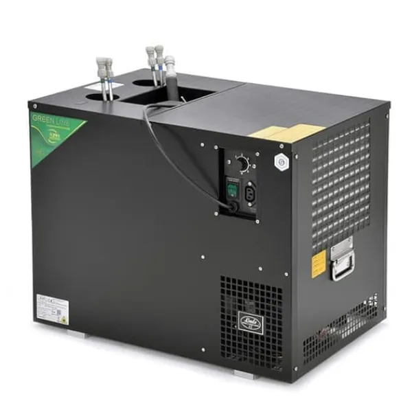 Öltapp AS-110, 2 / 4 / 6 linje för val, kör svalare, våta kylare – under disk, Green Line Effekt: 110 L/h vid 10 ° C TD Klar Kylslingor (att välja mellan): •2 kylslingor (vardera 14m långa)•4 kylslingor (2x14m och 2x11m långa)•6 kylslingor (2x14m, 2x11m och 2x8m långa) Den moderna och robust konstruktion garanterar lång livslängd och enkel transport Kylteknik är genom 45% mer effektiv Green Line – ekologiskt rent – med åtföljande kylning – 1/3 hk – 230V, 50Hz, 300W/2,98A – vatten: 30 liter – vatten Flödeshastighet hastighet~~POS=HEADCOMP: 7m Mått: 610 x 420 x 475 mm (BxDxH) Vikt: 31,5 kg / 33,5 kg / 35,0 kg •Denna dispenser har flera varianter: 2-line, 4-line och 6-line•AS-110 ölkylare är designad för professionell kylning av drycker i mindre restauranger, barer och värdshus.•Kylanordningen är utrustad med en vattenpump med 6m flytkraft, så kylaren kan placeras i källaren eller i källaren utan problem och ändå, tack vare den medföljande kylningen, kyls ölen perfekt upp till kranen.•Kylkapacitet på 110 L/H Kylslingorna passerar genom den övre täckplattan och är utrustade med snabbkopplingar (John Guest), detta möjliggör enkel anslutning av dryckesledningarna.•Den moderna kompressorkylanordningen Lindr använder strömförsörjningen för direkt överföring till kylning, vilket garanterar minimal energiförbrukning.•Lindrs kylteknik är 45 % effektivare än elförbrukningen. Alla kylslingor är gjorda av rostfritt stål.•Materialen som används uppfyller de högsta hygienkraven och garanterar en lång livslängd för denna kylare.•Två bärhandtag på sidorna möjliggör kylare för enklare hantering.•Med sin prestanda och den senaste tekniken är AS-serien i toppen av professionella kylaggregat.