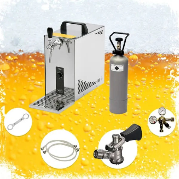 Komplett uppsättning, Öltapp, ölkylare, ölmaskin, öl dispenser, ölautomat, öltappingssystem PYGMY 25, en linje torr kylare, 35 liter/h -Bierkoffer, waterchiller, Green Line kapacitet: 35 L/h vid 10 ° C TD klar att användas på bara 2-4 minuter reglerområde 2 till 10 grader Den moderna och robust konstruktion garanterar lång livslängd och enkel transport kylteknik är genom 45% mer effektiv Består av: •PYGMY 25 ölutmatare en linje torrt kylanordning gjord av rostfritt stål, 35 liter/h •liten torr kylning Öltapp tillverkad av rostfritt stål•uteffekt: 35 l/h •inkl. Rostfritt stål droppskål•inkl. Efter kylningskompensator•i 2-4 min. Minuter redo•Kontroll intervallet 2 till 10 grader•torr kylning Öltappn en linje•Tekniska värden:•267 Watt/230V/50Hz, 1,16A•Storlek:B/D/H 170x280x325 mm•i vikt: nbsp 14,5; KG•Egenskaper:•anslutningar: John Guest 3/8 tum•tryckreducerare en linje CO2 för öl Öltapp 3 bar•CO2 – flaska, 2,0 kg•CO2 slang klar 1,5 m•öl Bong John Guest – 3/8 och 5/8 skruv kontakt 2,00 m – helt klar•kolsyra nyckel captive•tapphuvud, ditt val: ingen, platt, stationsvagn, korg, Köpi, 5 liters fatadapter Kontroll av öltemperaturen En av de största funktionerna hos Lindr PYGMY 25 Öltapp är dess förmåga att kontrollera öltemperaturen. Du kan justera temperaturen från +2 till +10 grader, vilket gör att du kan servera ölen vid precis den temperatur du vill ha den. Detta ger en perfekt kall och uppfriskande ölupplevelse! Robust och modern design Lindr PYGMY 25 ölmaskin har en modern och robust design som garanterar långvarig hållbarhet och enkel transport. Du kan ta med din ölautomat var du än går – den är så lätt och portabel att du kan njuta av god öl på språng! Perfekt för hemmabruk Vill du få en bit av krogen hem till ditt eget kök? Lindr PYGMY 25 Öltapp är det perfekta valet för dig! Med denna ölmaskin kan du hälla upp din favoritöl när du vill, precis som på krogen. Hög kapacitet – 35 liter per timme Med en kapacitet på 35 liter per timme är detta den perfekta ölautomaten för både små samlingar och större evenemang. Servera en stor mängd gäster snabbt och enkelt med denna högkvalitativa ölmaskin. Hög kvalitet på din öl Denna ölautomat levererar alltid högsta kvalitet på din öl. Kontrollen över trycket och temperaturen säkerställer att din öl är perfekt kolsyrad och serverad vid önskad temperatur varje gång. Beställ din Lindr PYGMY 25 Öltapp nu och njut av den perfekta ölupplevelsen direkt hemma i ditt eget kök!