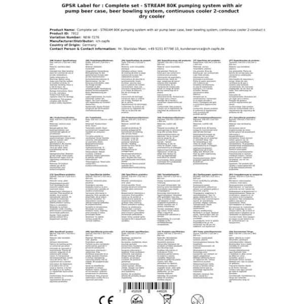 Ölkranar-Öltapp – STREAM 80K ölväska, genomströmningskylare, 2-rads torrkylare, KEG:Type A, KEG 2:Type G