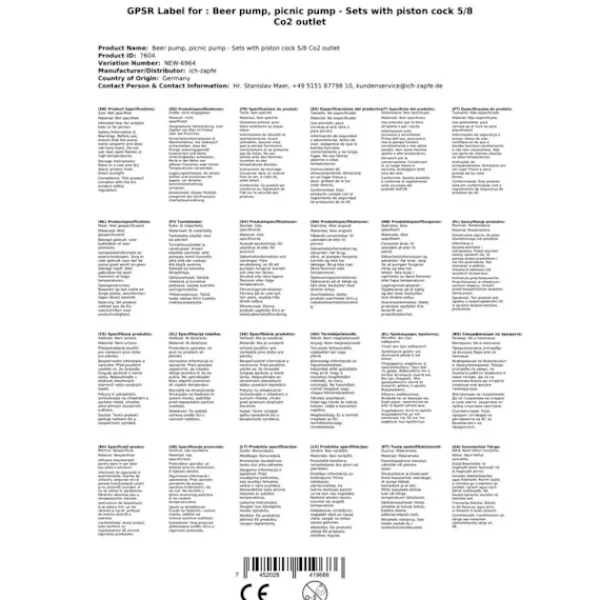 Set med picknickpump med kolvkran 5/8 Co2-utlopp Det är möjligt att tappa direkt utan en CO2-flaska! Allt du behöver är en kagghatt med ett 5/8 CO2-utlopp! Skruva helt enkelt fast picknickpumpen på keglocket – pumpa in luft och du är redo att tappa! – Konstruktion helt i metall – inkl. kolvkran – utan fatförslutning