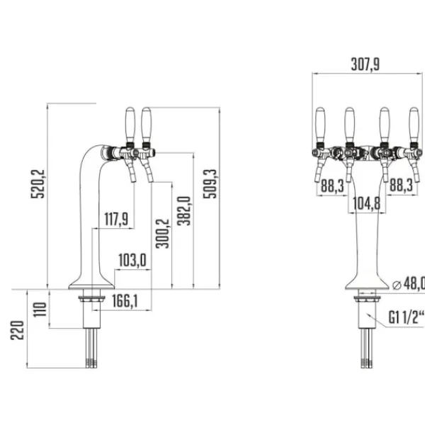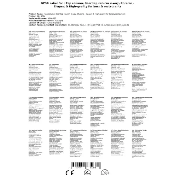 Tapptorn, Ölkran – 4-tråd, krom – elegant och högkvalitativ för barer och restauranger Denna utsökt designade Tapptorn ölkran i kromfinish är en högkvalitativ dispenseringskolonn som garanterar en elegant och stilren ölutmatning på krogen eller restaurangen. Den rostfria efterkylningsslingan förlänger livslängden på kranen och säkerställer pålitlig kylning av kornjuicen. Inloppet med en diameter på 8 mm och rostfria material ger en hygienisk ölutmatning för att säkerställa att kunderna alltid får en fräsch öldrickupplevelse. Tekniska data: •Chrome-version •Ackompanjemangskylning för optimal kylning •Rostfri efterkylningsslinga •Rostfri inlopp med 8 mm diameter •Uttag med 5/8 diameter •Levereras utan emblem Med en högklassig kromfinish är denna ölkran en riktig höjdpunkt på baren eller restaurangen. Med fyra rader som säkerställer snabb utmatning av ölen ger denna dispenseringskolonn en smidig och snabb ölutmatning av högsta kvalitet. Denna Tapptorn ölkran i krom är perfekt för alla barägare och restaurangägare som vill servera öl på ett stilfullt och högkvalitativt sätt. Och glöm inte, kompensatorkranarna och distanshylsorna måste köpas separat.Klicka på Lägg till i kundvagn för att beställa denna Tapptorn ölkran i krom till ett överkomligt pris idag!