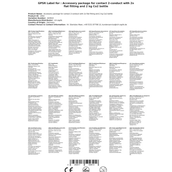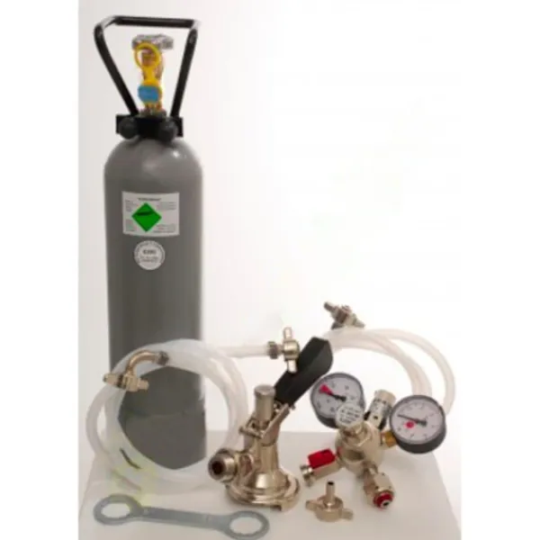 Tillbehörspaket för Kontakt 2 rader med 2x typ A fatkoppling och 2 kg CO2 flaska bestående av: – trådsensor 2-reducer CO2 för öl Öltapp 3bar – CO2 – flaska, 2,0 kg – 2 x CO2 slang komplett, 1,5 m – 2x öl slang John Guest – 3/8 och 5/8 skruv-on-kontakt 1,50 m – helt klar – kolsyrat nyckel captive – 2x Fatkoppling, KEG – platt stängning – montering på ovansidan – Keller tappning