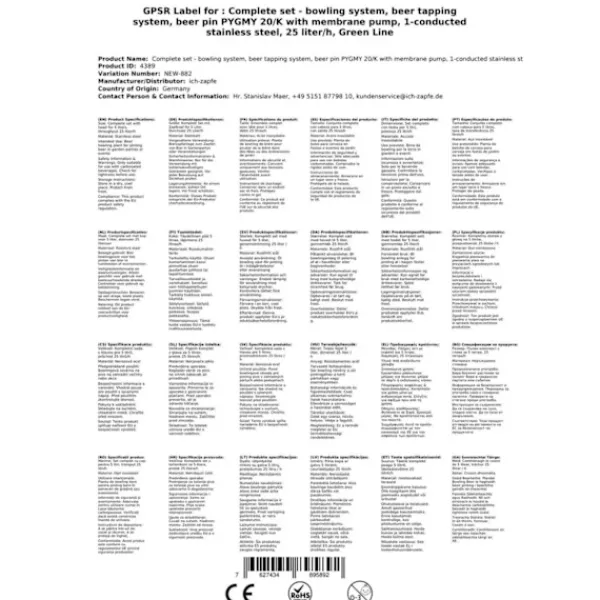 Öltapp ,PYGMY 20/K, med membranpump en linje torr kylanordning gjord av rostfritt stål, 25 liter/h, Green Line, KEG:5 liters adapter