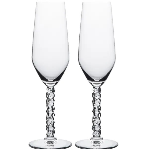 Carat champagneglas i 2-pack från Lena Bergström, Orrefors. Glasen har en klassisk form med Carats karakteristiska fot precis som hela serien. Glasen är eleganta, romantiska och passar perfekt till mingel, middag och tillsammans med andra produkter ur serien Carat. Detta är designutveckling i sant Orreforsmanér.