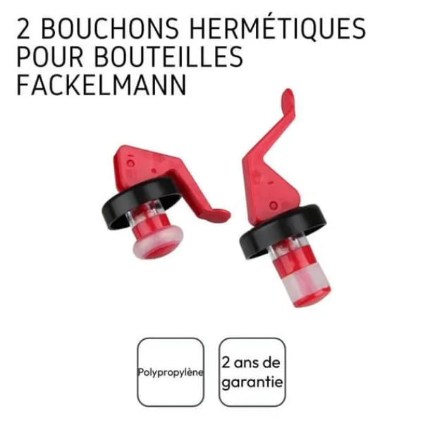 BESKRIVNING: Fackelmann erbjuder denna uppsättning med 2 plastkorkar: våra korkar har spak och används för att stänga alla dina flaskor; håll spaken i vertikalt läge och sätt in den i flaskhalsen och sänk sedan spaken tills den når flaskan. DET LILLA +: Du kan återförsluta dina kolsyrade vattenflaskor utan att tappa bubblor; våra korkar ingår i vår policy för avfallsminskning eftersom de är tvättbara och återanvändbara. INNEHÅLL: 2 röda spakkorkar. Märket Fackelmann erbjuder denna uppsättning med 2 spakkorkar som möjliggör en hermetisk återförslutning av dina vinflaskor. När du öppnar en flaska rödvin, vitt vin eller rosé kan korken av kork skadas och du kanske inte kan återförsluta denna vinflaska. Denna typ av spakkork gör att du kan stänga flaskan hermetiskt, och spaken säkerställer att flaskan är ordentligt stängd och att ingenting läcker ut. Fackelmann France är ett företag specialiserat på distribution av köks- och bakredskap, samt tårtfomer och bakplåtar. Företaget strävar efter att förenkla sättet att laga mat för alla genom sina smarta verktyg. Fackelmann Frages köksredskap erbjuds till alla typer av kockar för en enkel och daglig användning. Vispar, spatlar, slevar, skalare, skärbrädor och många fler är tillgängliga för att förbereda läckra och alltid mer originella recept.