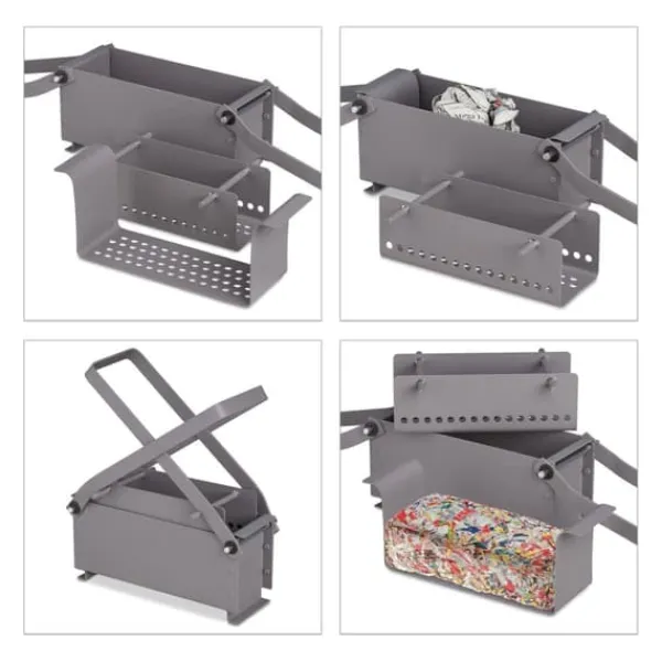 Återvinn avfallspapper effektivt och skapa kompakta briketter för enkel förvaring med denna robusta och portabla papperspress, två hävarmar, hållbar stålkonstruktion, praktiskt tillbehör för eldstad eller miljövänliga projekt, totala mått: 24 x 30 x 12,5 cm, kroppsmått: 12 x 26 x 8,5 cm, vikt: 2,8 kg, material: stål, färg: grå