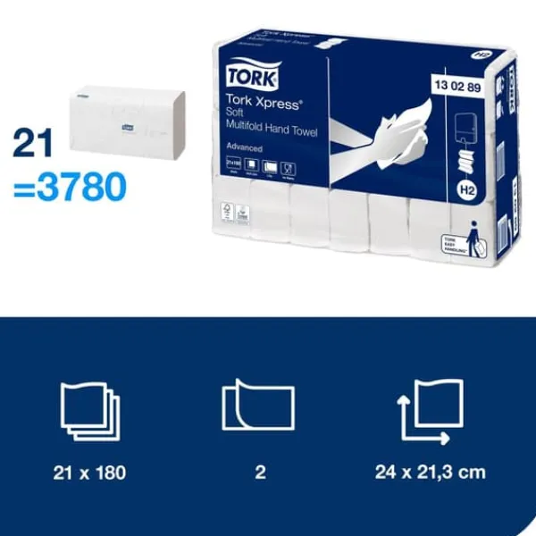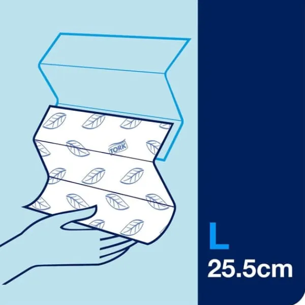 Pappershanddukarna är vikta i Z-vikning och kommer ut en handduk i taget – i kombination med Tork Xpress dispenser perfekt för toalettutrymmen med medelhög besöksfrekvens.