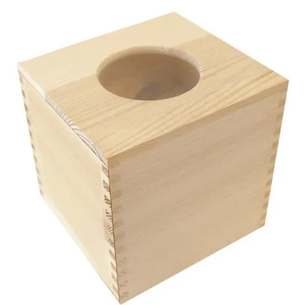 Denna trähållare för näsdukar erbjuder en elegant design med sin runda utskärning. Den mäter 14 x 12.3 H 14 cm, vilket gör den till ett praktiskt tillbehör för ditt hem. Den runda öppningen med en diameter på 8 cm underlättar åtkomsten till näsdukarna. De inre måtten på 11 x 12.5 H 12.5 cm gör det möjligt att förvara standard näsdukslådor. Du kan anpassa denna låda efter dina preferenser. Den passar olika dekorationstilar och ger en unik touch till ditt utrymme. Du kan använda olika kreativa tekniker för att dekorera denna låda. Tänk på målning för en livlig färg, servettklippning för en elegant effekt, eller glitter för en gnistrande touch. Mosaik erbjuder också ett originellt alternativ för att pryda detta tillbehör. Placera denna låda på ett soffbord, ett skrivbord eller i ett sovrum för en estetisk förvaring. Välj denna vackra förvaring för att förena funktionalitet och dekoration i ditt hem. – Mått: 14 x 12.3 H 14 cm – Rund öppning med en diameter på 8 cm – Inre mått: 11 x 12.5 H 12.5 cm – Material: Naturligt trä – Anpassningsbar efter din smak – Perfekt för olika kreativa tekniker – Skickas från Frankrike av vårt lager i Lyon.