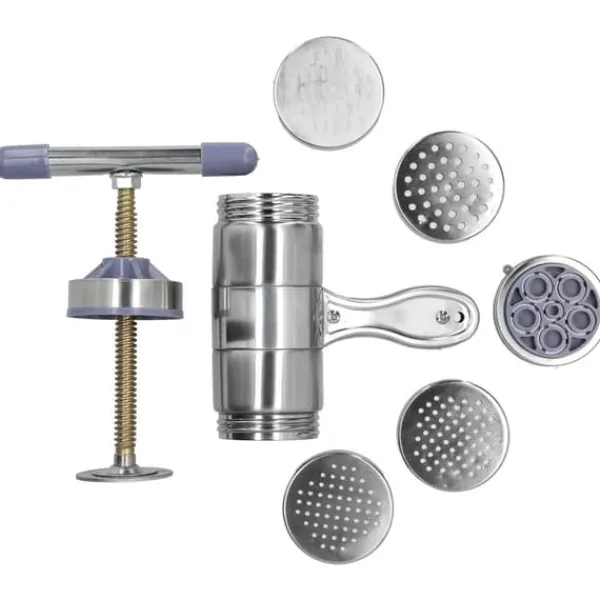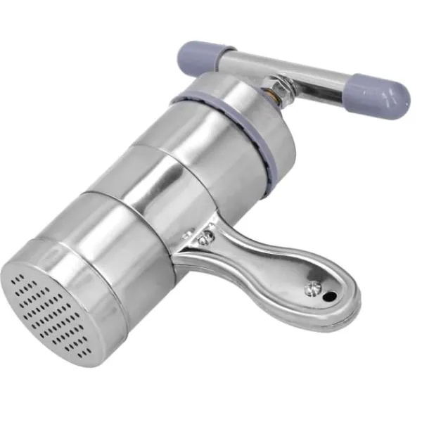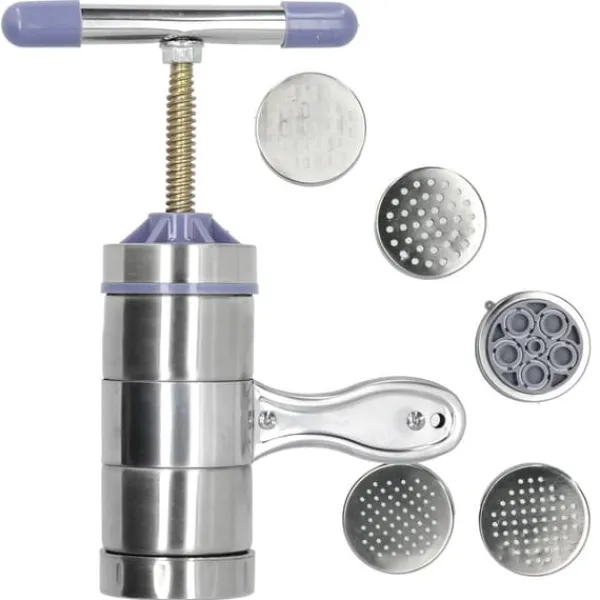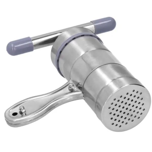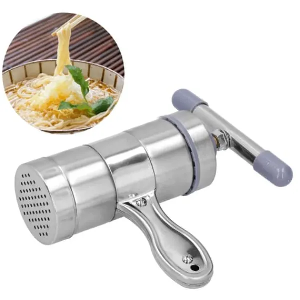 Välkommen till vår butik! Denna manuella nudelpress är enkel att använda och kan göra läckra nudlar på bara några sekunder. Den levereras med 5 formhuvuden för enkel installation och utbyte, vilket gör att du kan skapa nudlar i olika tjocklekar. Rengöringen är enkel eftersom den kan diskas direkt med vatten, vilket gör den idealisk för hemmabruk eller restaurangbruk. Tillverkad av högkvalitativt rostfritt stål är den rostfri, korrosionsbeständig, stark och hållbar. Detta praktiska köksredskap är mångsidigt för att göra nudlar eller extrahera juice. Produkten är 100 % helt ny, tillverkad av rostfritt stål, väger cirka 650 g och mäter cirka 18,5 x 14 cm med en handtagslängd på cirka 14 cm. Din beställning inkluderar 1 nudelmaskin och 5 formhuvuden. Nöjdhet: Våra kunder är vår högsta prioritet. Om du upptäcker några produktproblem efter att du mottagit varorna, såsom skador eller felaktig mängd varor, vänligen kontakta säljaren omedelbart. Vi gör vårt bästa för att ge dig tillfredsställande kundservice.
