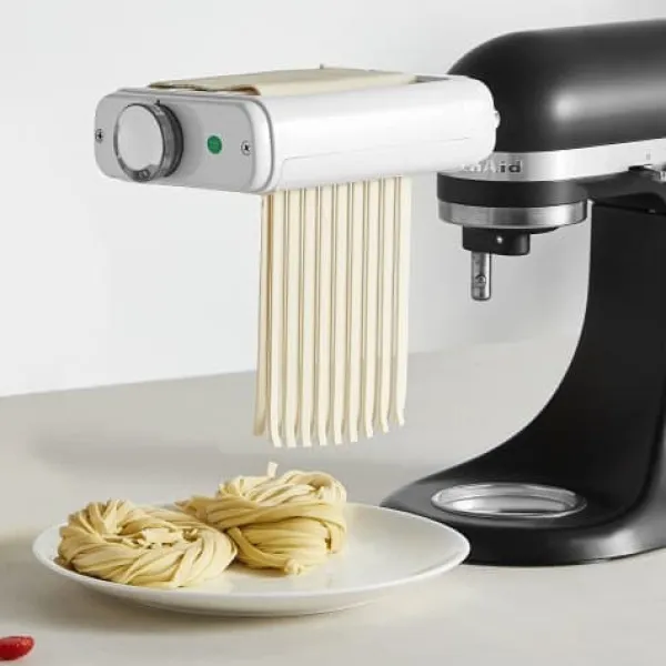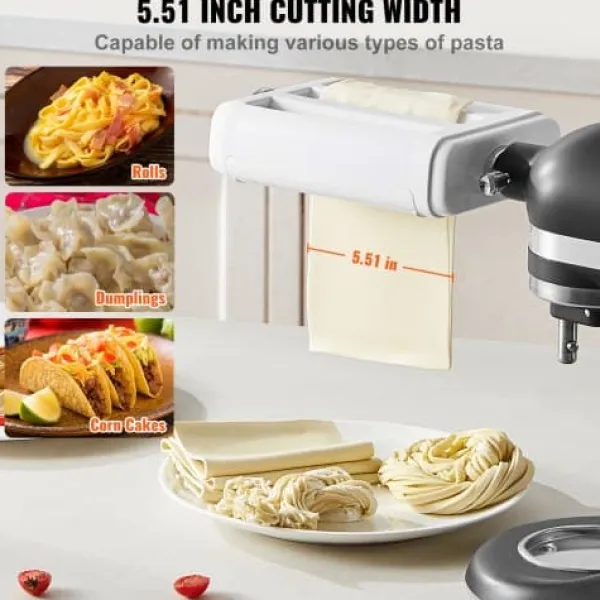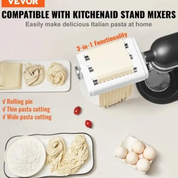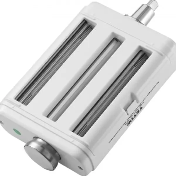 Detta 3-i-1 pastatillbehör i rostfritt stål är utformat för användning med KitchenAid köksmaskiner och gör hemlagad pastatillverkning snabb och enkel. Det kombinerar en pastaplåtsvals, spaghettiskärare och fettuccineskärare i ett praktiskt verktyg, vilket gör att du kan skapa olika pastatyper med justerbar tjocklek och bredd. Tillverkad av livsmedelssäkra material, erbjuder den enkel användning och rengöring för en smidig matlagningsupplevelse.