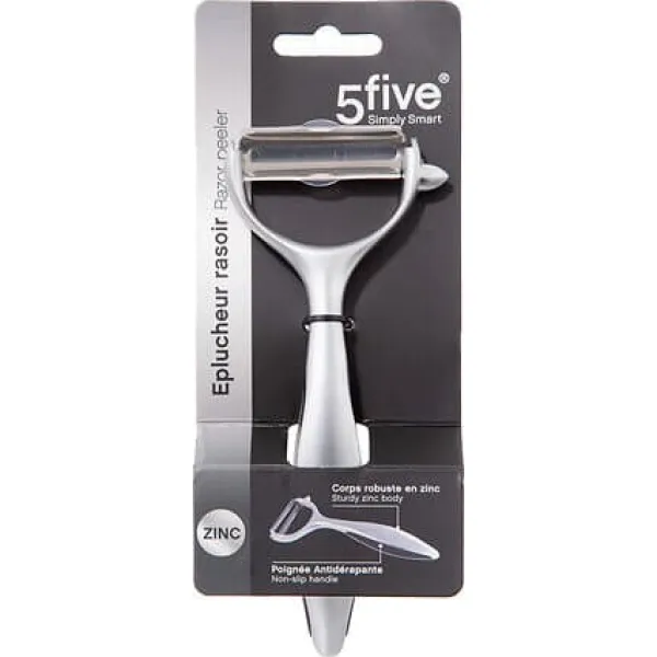 Att skala grönsaker och frukt har aldrig varit så snabbt och bekvämt! Denna rostfria skalare med gummihandtag är ett oumbärligt verktyg i alla kök. Tillverkad av slitstarkt rostfritt stål, det är detresistent mot korrosionoch garanterar lång livslängd.Gummihandtagethar utformats för att geett säkert grepp och maximal användningskomfortäven under svåra förhållanden. Dess kompakta storlek gör den lätt att förvara, och dess eleganta silverdesign gör den perfekt för alla köksstilar. Denna produkt kommer från det välkända varumärket5fem helt enkelt smart, känd för sina funktionella och snygga kökstillbehör. Skalaren kombinerar komfort, hållbarhet och estetik, vilket ger pålitligt stöd under måltidsberedning.