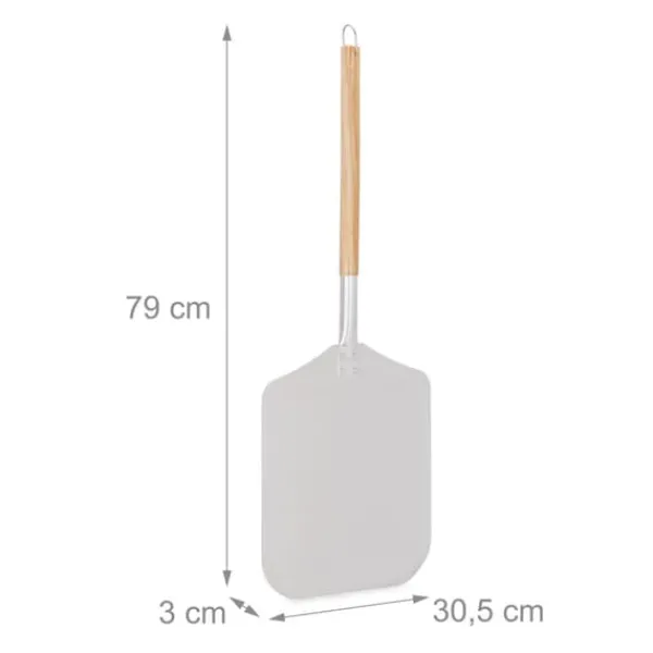 Skjut enkelt in och ut pizzor, bröd eller tarte flambée ur ugnen med denna robusta pizzaspade i aluminium. Den breda, platta skopan och det långa, fällbara handtaget i trä ger säker hantering och smidig förvaring, vilket gör den idealisk för både hemmabruk och professionellt bruk. Perfekt att använda med sten- eller tegelugnar samt pizzastenar.