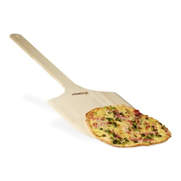 Baka och servera pizzor som ett proffs med denna extra stora pizzaspade i trä, designad för enkel hantering och säker användning i ugnen. Den rymliga spaden och det extra långa handtaget gör den perfekt för att förbereda, servera och presentera pizza, bröd eller tarte flambée. Tillverkad av naturligt, livsmedelssäkert furu, fungerar den även som en dekorativ köksaccessoar.