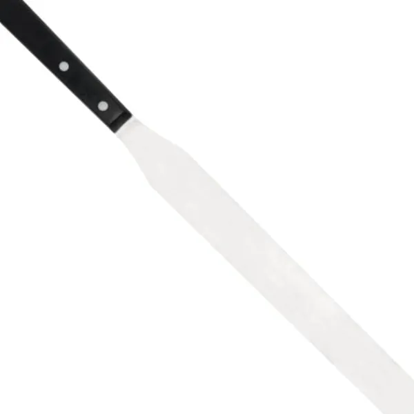 Producentkode: 840931 Hendi konfektspatel er kendetegnet ved høj kvalitet og universalitet. Den er lavet af tysk krom-molybdæn-vanadium stål. Spatelhåndtaget er lavet af ABS med aluminiumsnitter. Takket være dens glatte klinge er den perfekt til at smøre dej på og til fremstilling af konfekture. Produktegenskaber: – Stålklinge, – Komfortabelt håndtag, – Flad, fleksibel spatel. Tekniske parametre: – Katalognummer – 840931 – Tilstand – Ny – Serie – Creme – Bladmateriale – Krom-molybdæn-vanadium stål – Håndtagsmateriale – ABS med aluminiumsnitter – Bladlængde – 300 mm Sættet indeholder: – Konfekturespatel