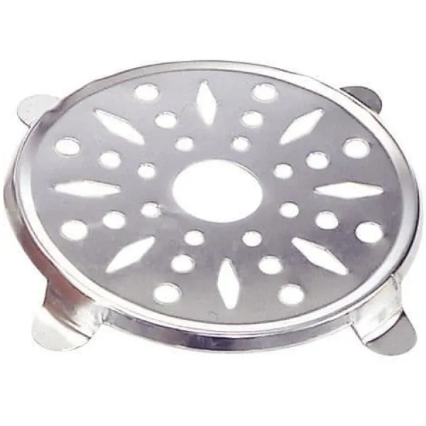 Förtennad plåtunderlägg – Tillverkad av metall. – Mycket värmebeständig. – Metallisk färg.