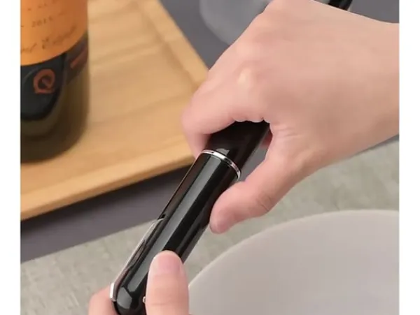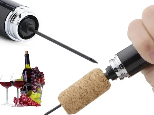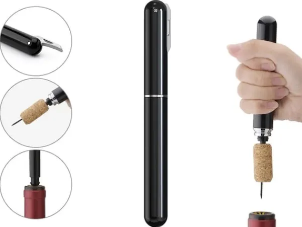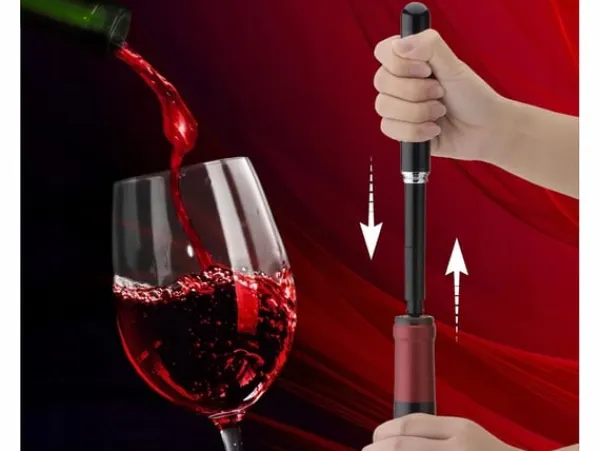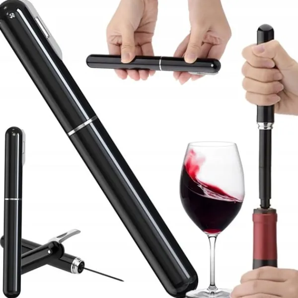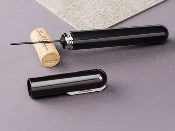 Den ergonomiska formen ger ett bekvämt grepp, och den inbyggda folieskäraren gör att flaskan förbereds snabbt och snyggt. Placera nålen i korken, pumpa med jämna rörelser och efter några tryck lossnar korken utan att skada flaskan eller lämna rester i drycken. En perfekt present till vinälskare och en oumbärlig hjälpreda vid vinprovning eller en mysig kväll hemma.