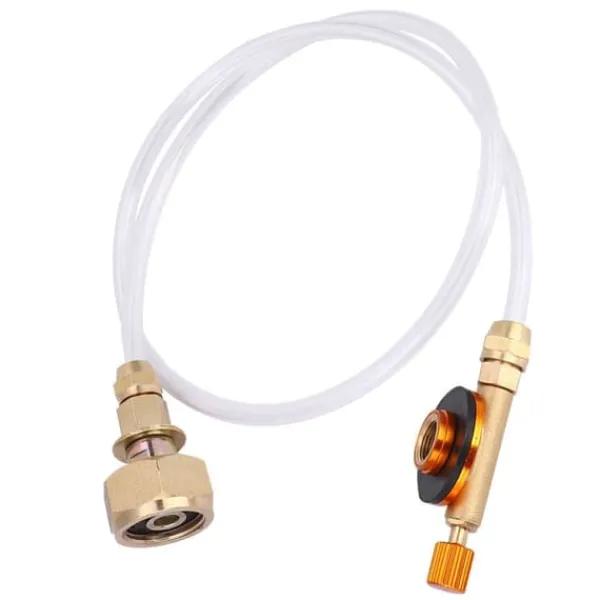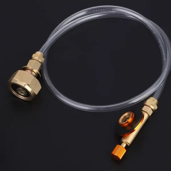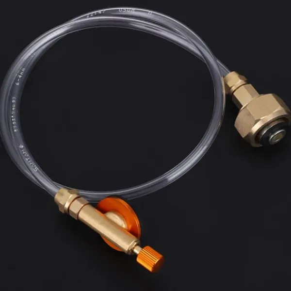 Denna gastankfyllningsventil är gjord av koppar och PVC, vilket säkerställer att den är lätt och hållbar. Den är liten i storleken, vilket gör den bärbar och kompakt för enkel transport. Den är utformad för att användas som en adapter för att blåsa upp platta gastankar för hushållsbruk.
