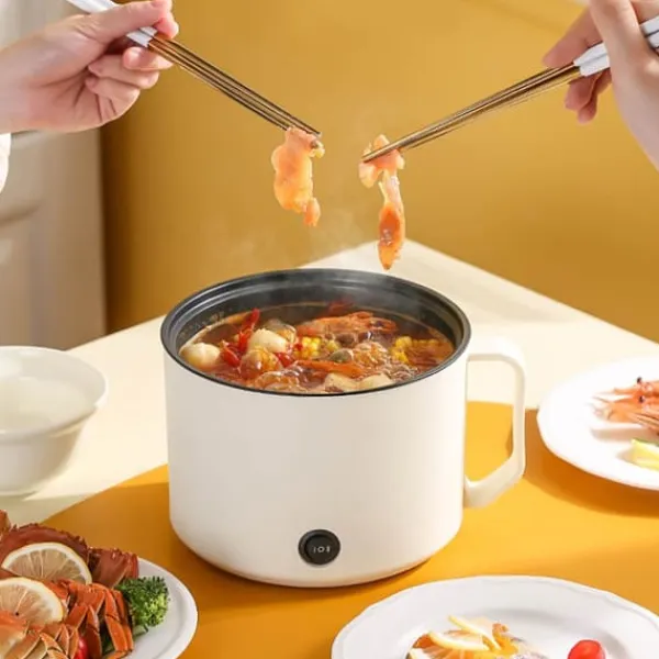3、 Perfekt för personligt bruk: Den lilla och portabla designen av den elektriska minikokpannan är lämplig för ensambruk eller studenthem, vilket gör den bekväm och snabb.