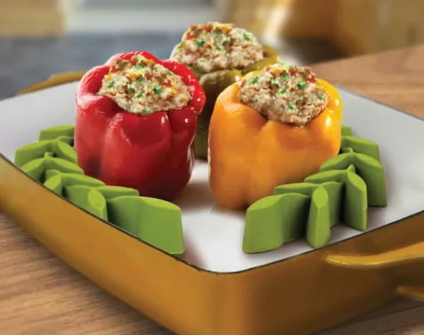 Detta värmetåliga Grillstöd av silikon håller din kyckling eller stek ur ohälsosamma fetter och otäckt brända bitar i botten av långpannan.