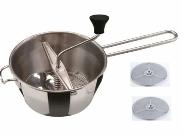 Upptäck INOXIBAR potatispressen, en grönsakskvarn i rostfritt stål med 2 diskar på 15 cm. Lätt (100 g) och praktisk, den är diskmaskinssäker. Paketdimensioner: 33,2 x 23,4 x 18,8 cm. Oavbruten produktion av tillverkaren, idealisk för daglig användning.